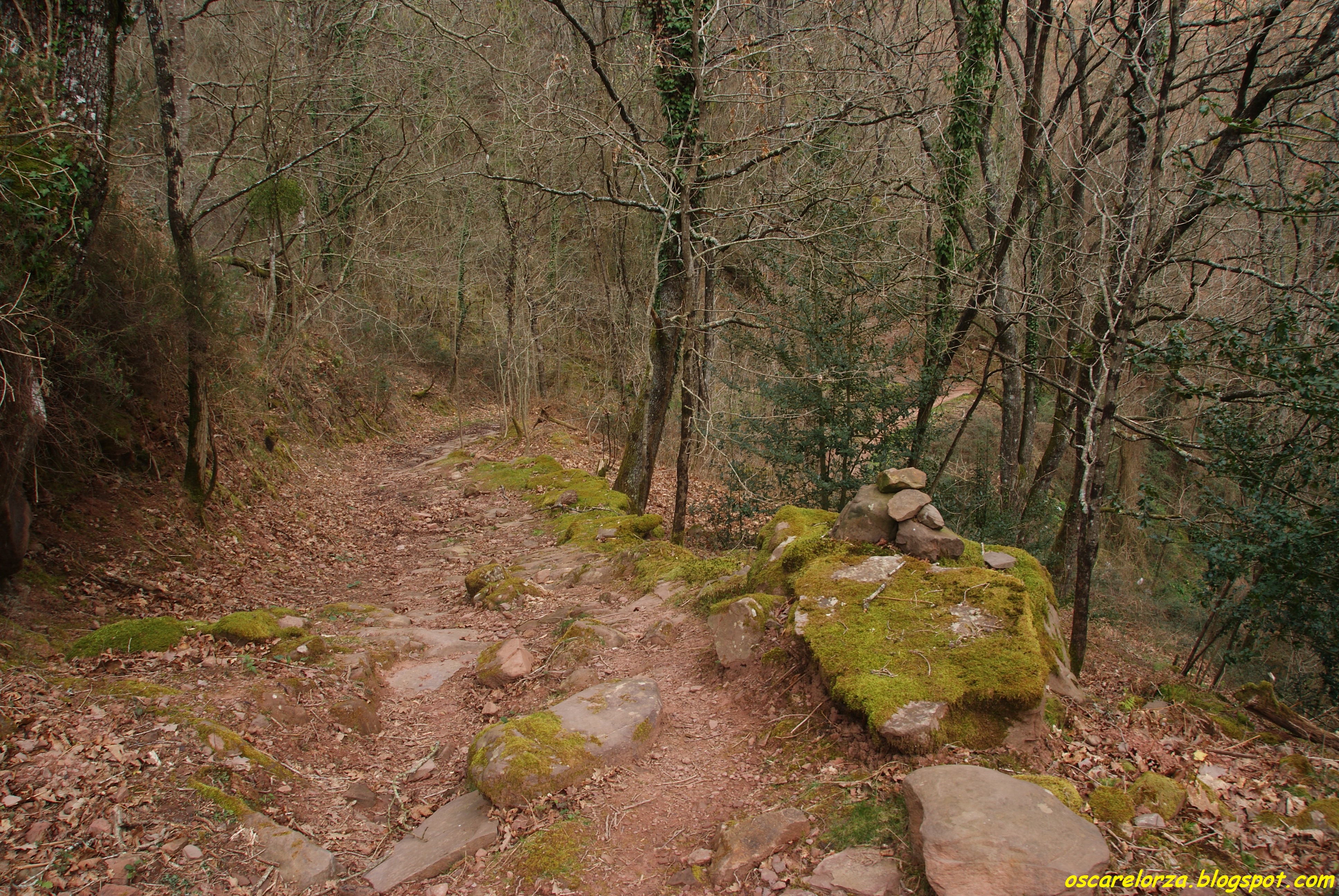 Bifurcación. El Camino del Agua continúa por la derecha aunque nos desviamos por la izquierda tan solamente unos metros con la intención de visitar Marizeneko Zubia ( izda )
